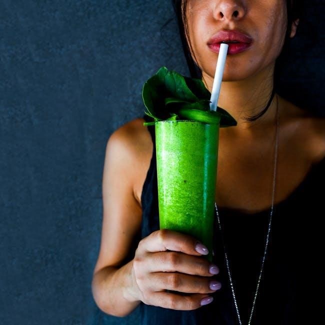 Spinach offers a milder taste, making it ideal for those new to green smoothies, while kale provides a more robust flavor and slightly different nutritional composition. The PDF suggests experimenting with both to find personal preferences, ensuring consistent intake of these vital ingredients throughout the 10-day program.