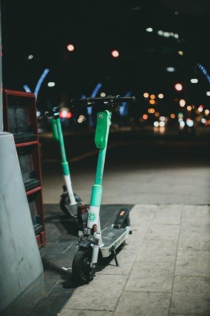 The electric motor is the heart of your scooter‚ converting electrical energy from the battery into mechanical energy for propulsion. Motors are typically rated by wattage‚ such as 800W or 1000W‚ influencing the scooter’s power and speed capabilities.