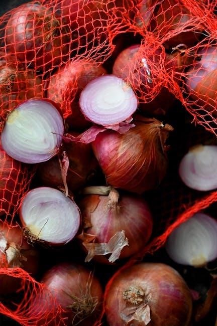 Storage onions‚ such as yellow or red varieties‚ can last for several months when properly cured and stored. Braiding onions and hanging them in a cool‚ dark‚ well-ventilated space is a traditional method. Alternatively‚ store loose onions in mesh bags‚ ensuring good airflow and regular inspection.