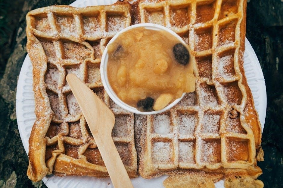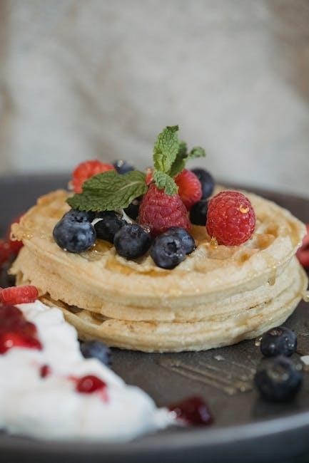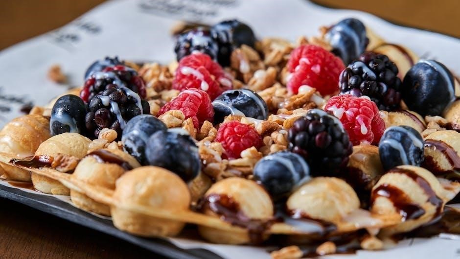 Savory lovers can experiment with toppings like fried chicken for a delightful chicken and waffles experience‚ or a fried egg and a sprinkle of chives for a hearty breakfast. The possibilities are truly endless – let your imagination run wild and create a waffle masterpiece!