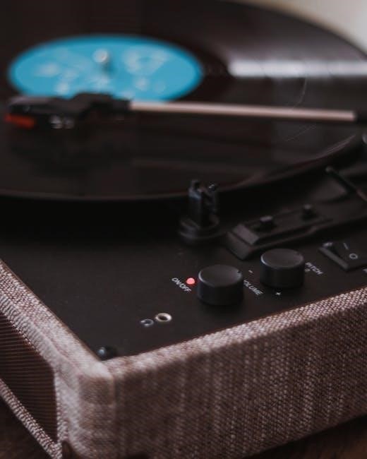 Operation is primarily manual; the tonearm is lifted and lowered by the user‚ providing a classic‚ hands-on experience. This allows for precise cueing and control over playback. Familiarize yourself with the power/volume knob and speed selector switch to optimize your listening sessions. Enjoy the warmth and authenticity of vinyl with these intuitive controls!